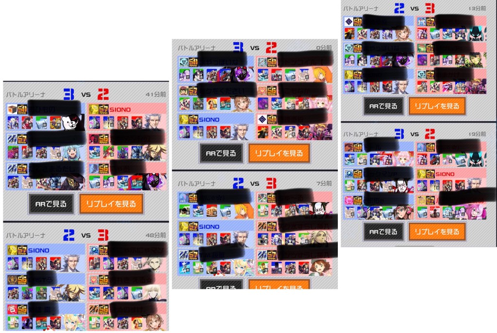 野良で潜っているためある程度は仕方ないが、画像左下及び中央下の試合はどう足掻いても勝つことができない。こんな面白くない試合があっただろうか。