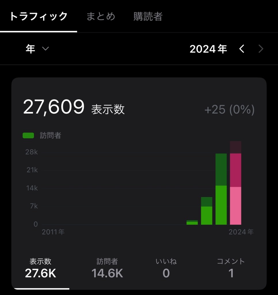 そして、今日閲覧数が去年のそれを突破した。もう伸びないかなと思っていたが、9月でもう更新できたのは嬉しい。みんな本当にありがとう。