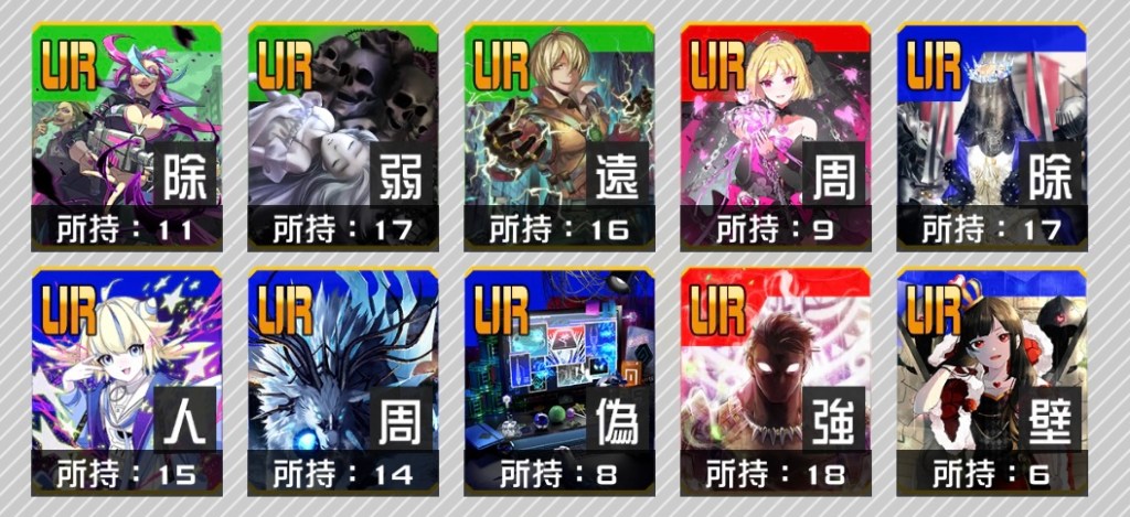 恒常カードがついに10枚まで選べるようになった。コラボ勢でもまだ恒常4凸していないよ〜という人も多いだろう。恒常カードは基本コラボカードより弱いがちとされていて実際大体正しいのだが、恒常にしかない強いカードも何個かは存在する。どうしても欲しいカードがあれば引くのを考えてもいいかもしれないが、基本は温存してコラボキャラを入手することをおすすめする。ちなみに12/20までなので12/23から開催のコラボまで待つとこの3%ガチャは終わってしまう。コラボキャラが出たから残りを3%ガチャに回す、ということができないので要注意。